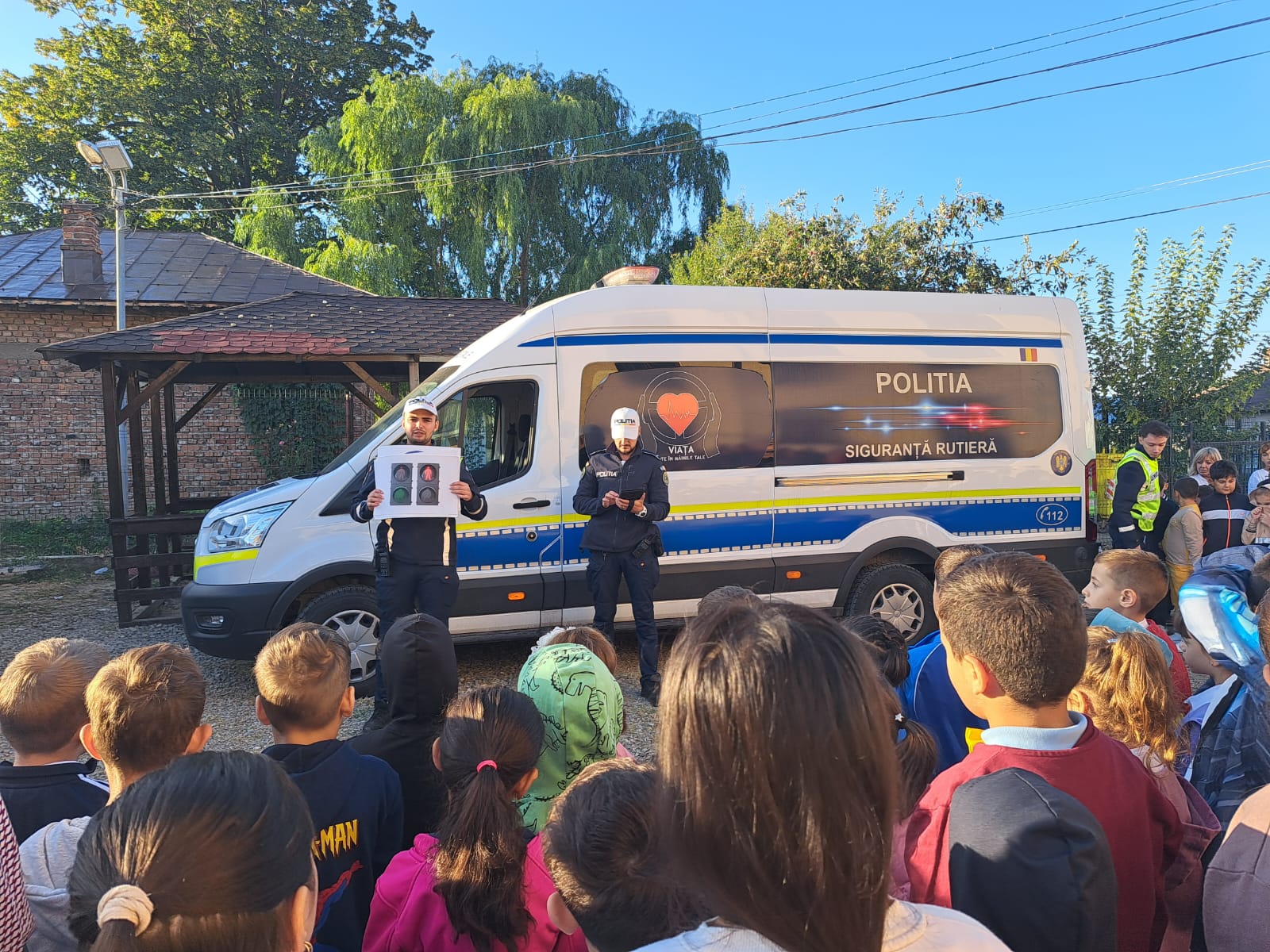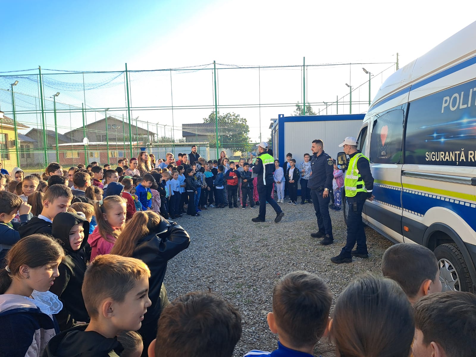 Cu această ocazie, au fost prezentate aspecte privind circulația pe drumurile publice: modul de deplasare, de traversare a străzilor, alegerea locului de joacă, deplasarea cu bicicleta, cu trotineta electrică, modul de deplasare cu rolele, precum și alte reguli specifice.